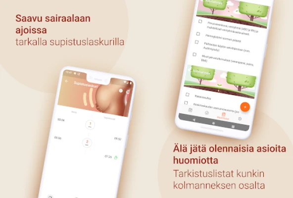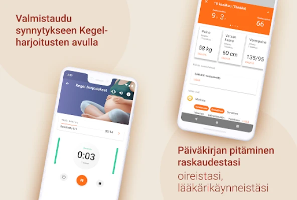 Pysy järjestyksessä helposti muokattavien tehtävälistojen ja muistilistojen avulla, jotka on jaettu jokaiselle raskauskolmannekselle. Erilliset listat kattavat niin synnytystä edeltävät asiat kuin sairaalakassin ja vauvan syntymän jälkeiset tarpeet, varmistaen, ettei mikään tärkeä unohdu. Raskauskalenteri auttaa pitämään mielessä kaikki tärkeät tapaamiset. Kun suuri hetki lähestyy, kätevä supistuslaskuri auttaa seuraamaan supistuksia ja antaa suuntaa-antavan tiedon siitä, milloin on aika lähteä sairaalaan. Äläkä unohda tallentaa tunteitasi ja muistojasi henkilökohtaiseen päiväkirjaan – se on aarreaitta, johon voit palata ja katsella raskausaikana otettuja kuvia vauvan synnyttyä. Olemme sitoutuneet kehittämään parhaan mahdollisen tuen tuleville äideille ja otamme mielellämme vastaan palautetta ja kehitysehdotuksia.